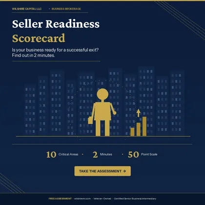 Most business owners think they're ready to sell, until a buyer starts looking under the hood. This free 2-minute assessment evaluates your business across the 10 critical areas that buyers and lenders examine before making an offer. Get your score, see where you stand, and find out exactly…